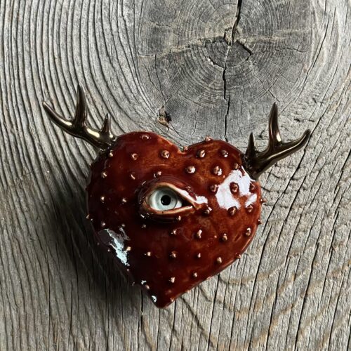 Each observant heart, or Oculus Cordis (latin for “eye of the heart”), is individually hand sculpted and decorated and has a keyhole slot on the back for hanging – though you don’t have to hang it!