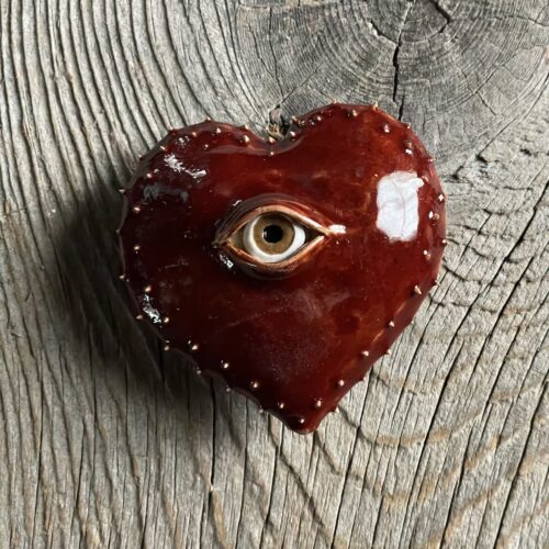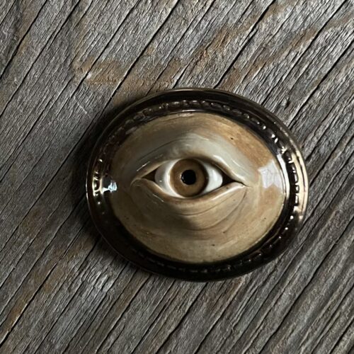 These pears are a design that I developed based on ancient symbolism and roman/pre-roman votives. The pear is a symbol of prosperity and longevity (and commonly associated with females), and the eye is a symbol of protection and watchfulness. I like to think that these odd little fellows might watch over your home, bringing good luck and safety wherever they are.