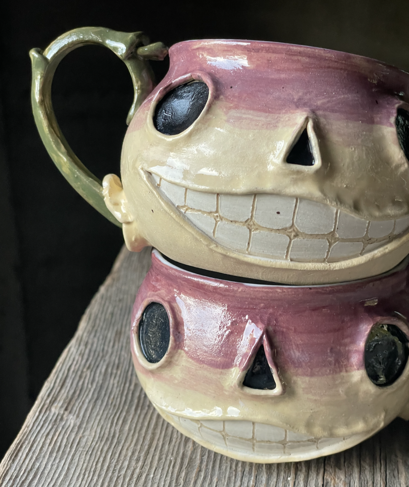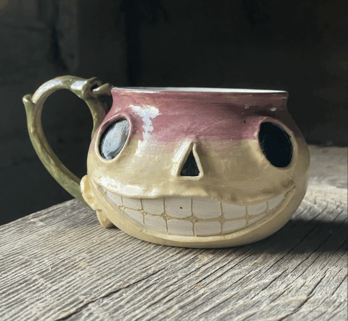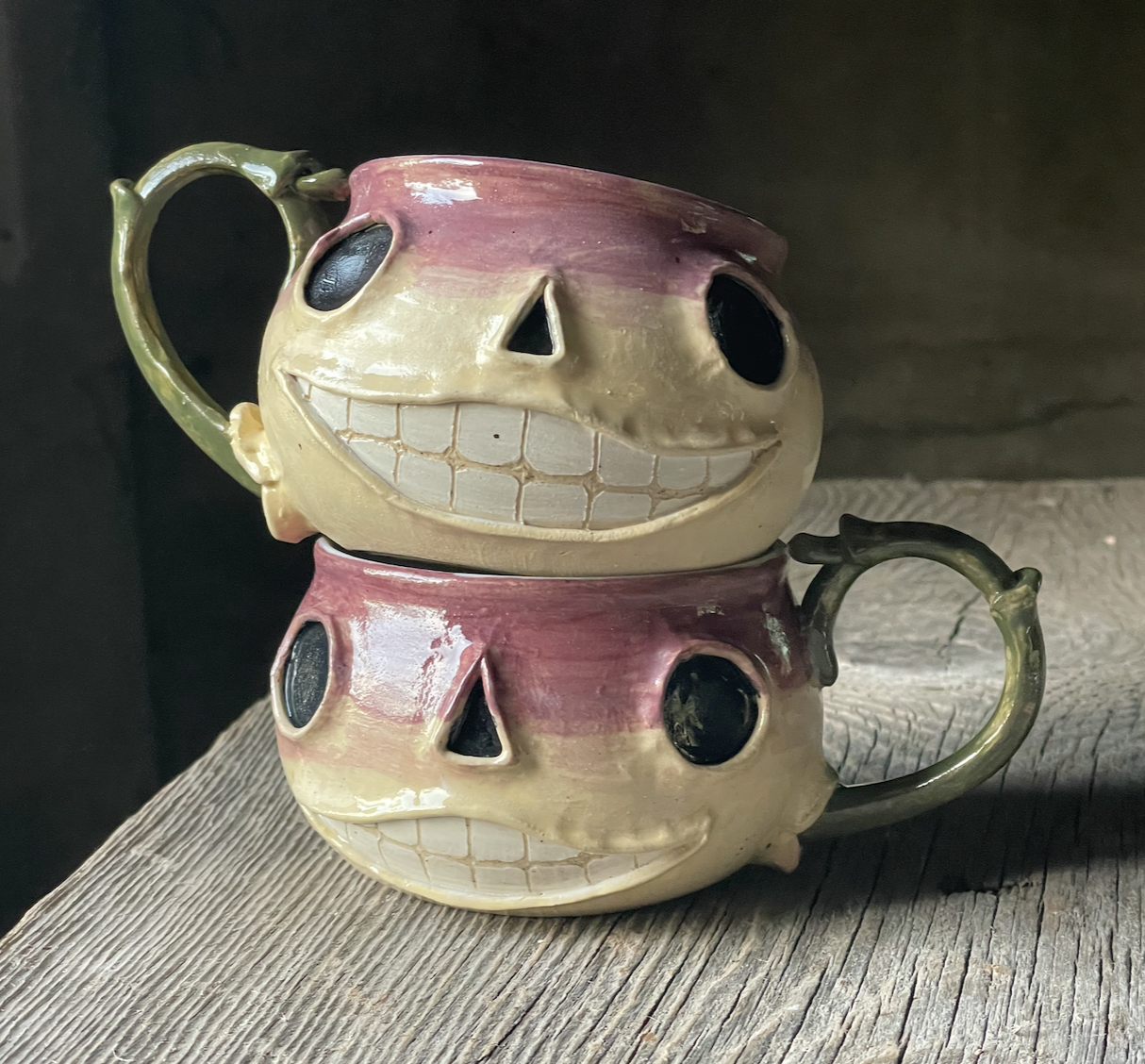 Please note that this is a preorder! By purchasing, you understand that your item must be made individually (thrown, carved, handled, sculpted, fired, underglazed, glazed and then refired) before shipping.